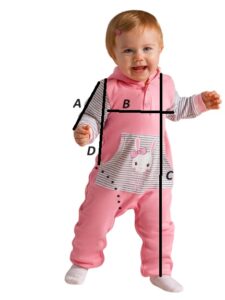 9-12 mois – taille bébé 74 cm / A – 26 cm / B* – 44 cm / C – 62 cm