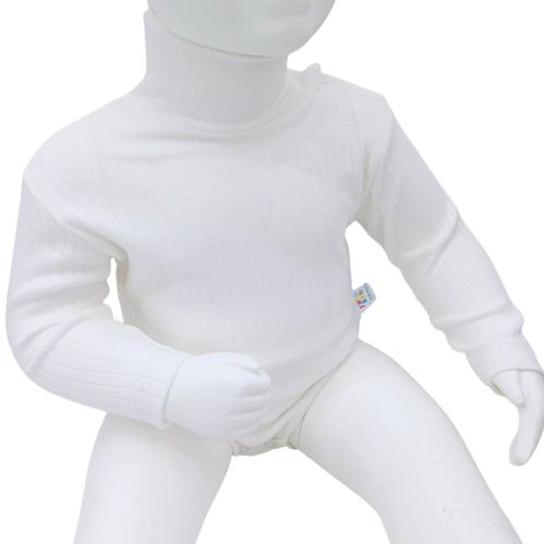 Ce body à col roulé pour bébé, fabriqué en 100% coton, est idéal pour garder votre enfant au chaud pendant l’hiver. Conçu avec des manches longues et une matière douce et respirante, il offre un confort optimal pour les bébés, en protégeant leur peau délicate. Disponible en tailles 0-3 mois, 3-6 mois et 6-9 mois, ce body blanc classique est facile à enfiler grâce aux boutons-pression. C’est un indispensable pour l’hiver, parfait pour des tenues superposées ou porté seul pour un style élégant et cosy.
