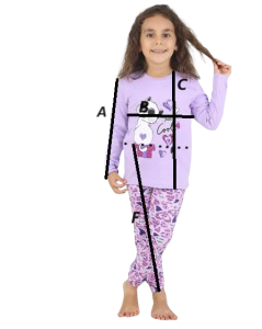 24-36 mois A – 35 cm / B* – 64 cm / C – 39 cm / F – 56 cm