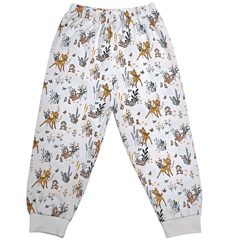 - Pantalon Imprimé : Le pantalon assorti, décoré avec des motifs de Bambi, complète parfaitement l’ensemble.
