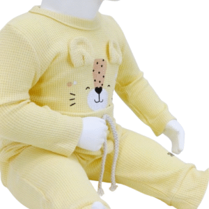 Ensemble bébé en coton avec body, pantalon et bonnet à oreilles – Jaune (3-6, 6-9, 9-12 et 12-18 mois)