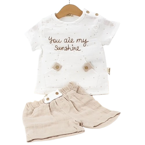 Ensemble bébé été coton bio t-shirt + short « You are my sunshine » 3–24 mois