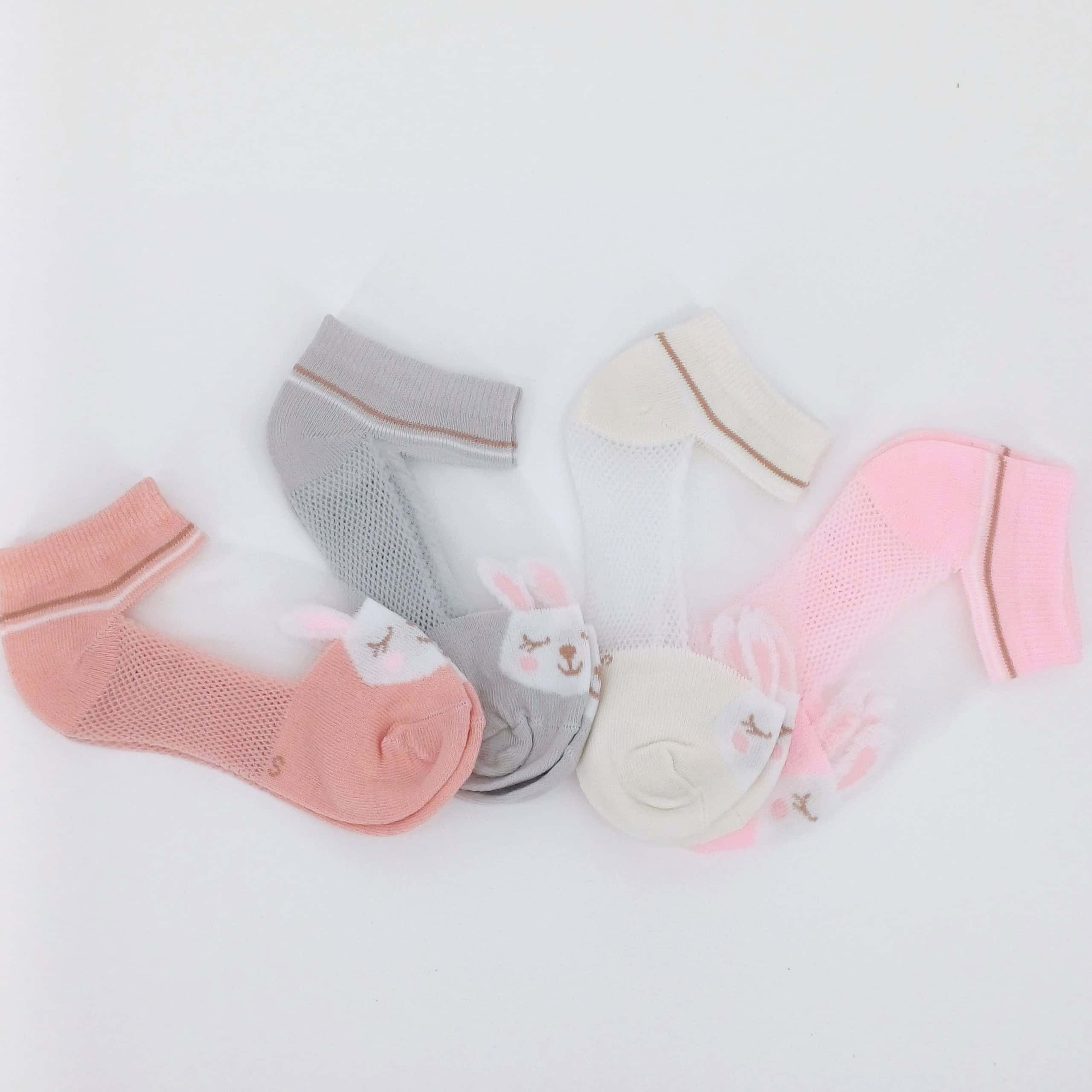 Lot de 4 paires de chaussettes pour fille de 1 à 2 ans avec des motifs adorables de petits lapins brodés. Les chaussettes sont disponibles dans des tons pastel doux, apportant une touche de tendresse et de style aux tenues des petites filles. Fabriquées en matière respirante et douce, elles sont conçues pour offrir un confort optimal tout au long de la journée.