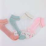 Lot de 4 paires de chaussettes pour fille de 3 à 5 ans avec des motifs adorables de petits lapins brodés. Les chaussettes sont disponibles dans des tons pastel doux, apportant une touche de tendresse et de style aux tenues des petites filles. Fabriquées en matière respirante et douce, elles sont conçues pour offrir un confort optimal tout au long de la journée.