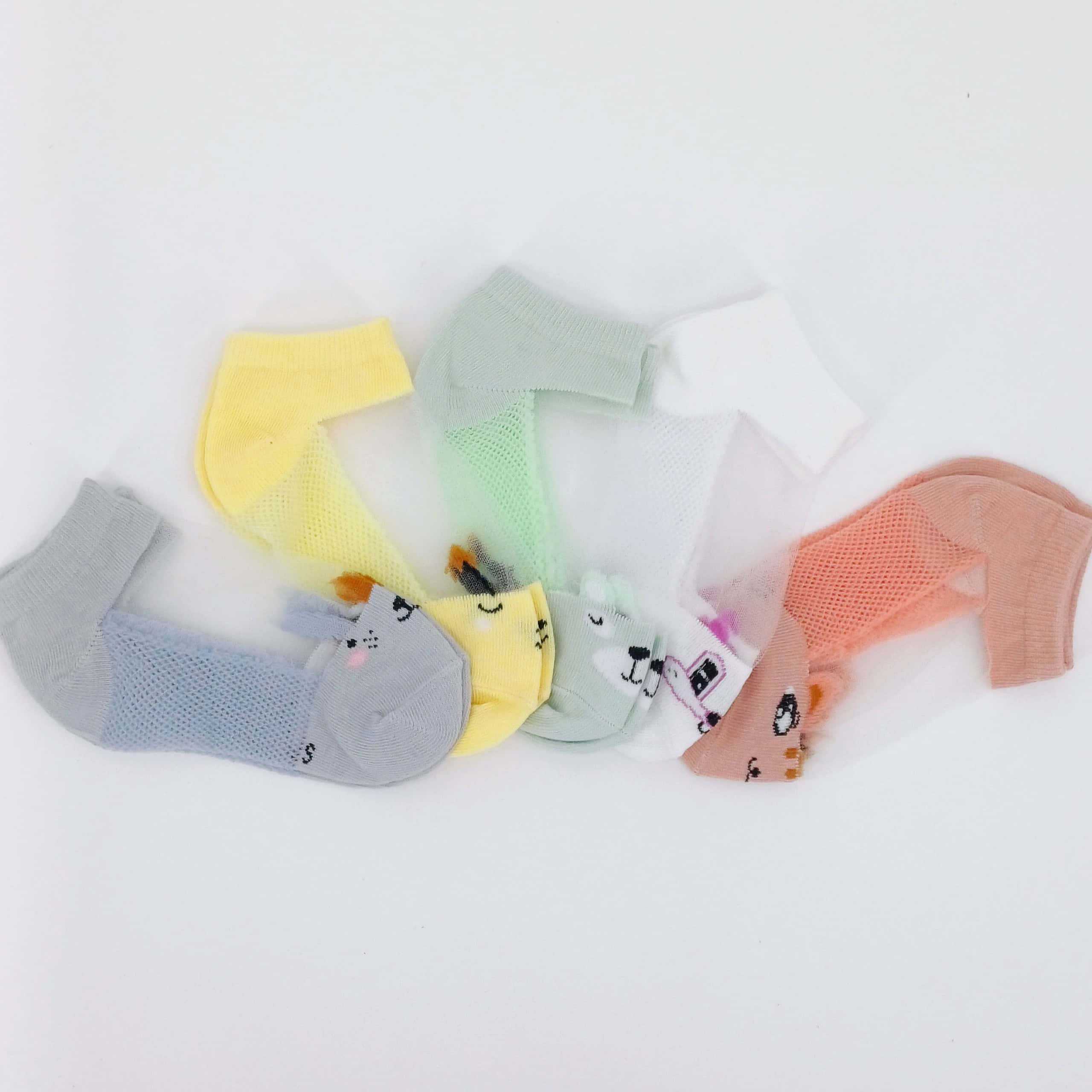 Lot de 5 paires de chaussettes pour fille de 1 à 2 ans avec des motifs adorables de petits lapins brodés. Les chaussettes sont disponibles dans des tons pastel doux, apportant une touche de tendresse et de style aux tenues des petites filles. Fabriquées en matière respirante et douce, elles sont conçues pour offrir un confort optimal tout au long de la journée.