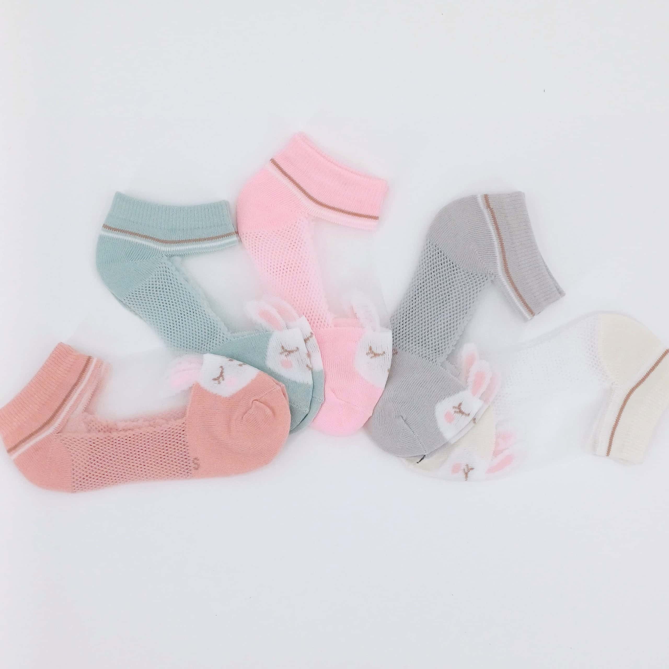Lot de 5 paires de chaussettes pour fille de 3 à 5 ans avec des motifs adorables de petits lapins brodés. Les chaussettes sont disponibles dans des tons pastel doux, apportant une touche de tendresse et de style aux tenues des petites filles. Fabriquées en matière respirante et douce, elles sont conçues pour offrir un confort optimal tout au long de la journée.
