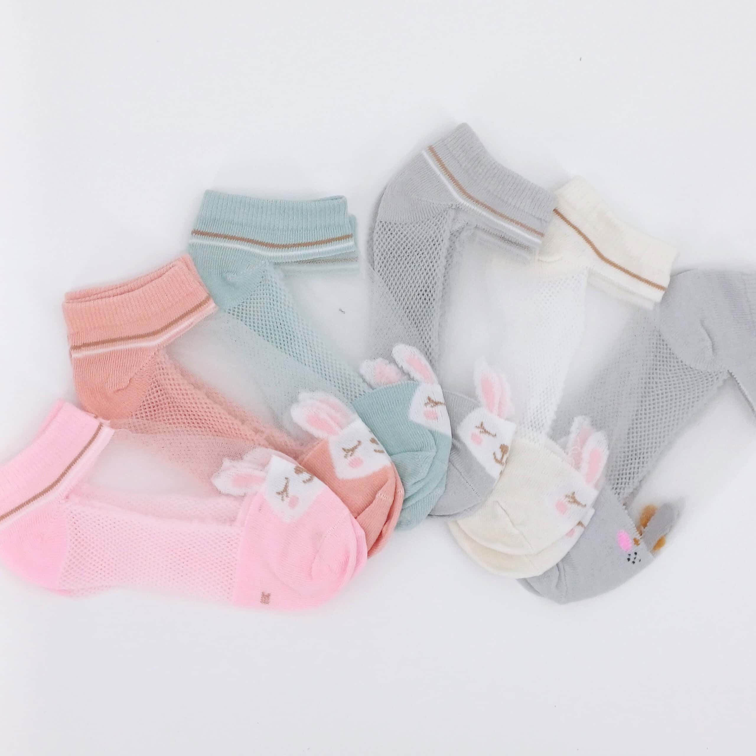 Lot de 6 paires de chaussettes pour fille de 2 à 3 ans avec des motifs adorables de petits lapins brodés. Les chaussettes sont disponibles dans des tons pastel doux, apportant une touche de tendresse et de style aux tenues des petites filles. Fabriquées en matière respirante et douce, elles sont conçues pour offrir un confort optimal tout au long de la journée.