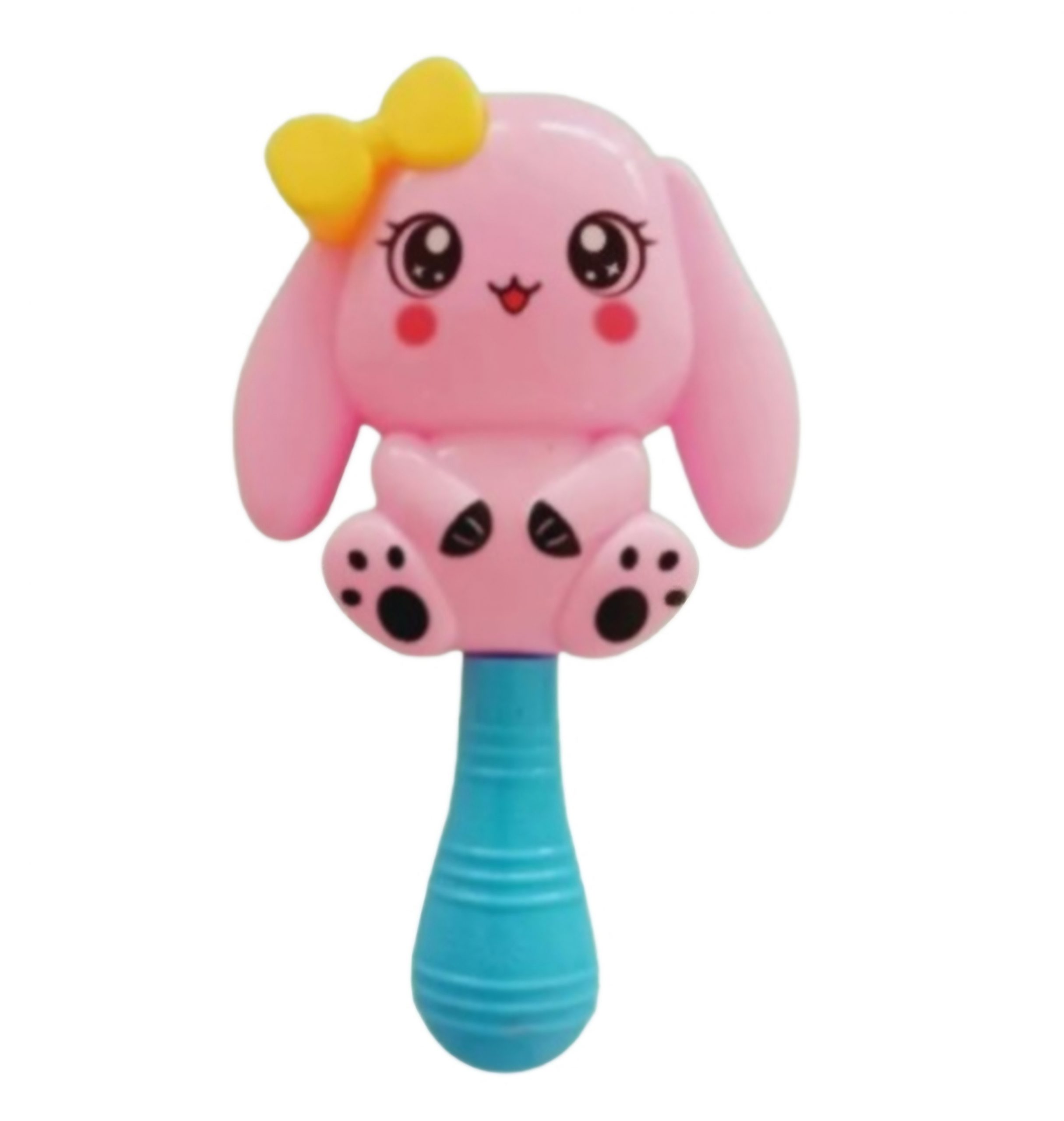 Ce produit est un hochet pour bébé en forme de lapin rose avec des oreilles longues et un joli nœud jaune. Le visage du lapin est très mignon avec de grands yeux brillants et des joues roses, ce qui attire facilement l’attention des enfants. Le hochet est doté d’une poignée bleue ornée de motifs en relief, parfaite pour les petites mains des bébés. Ce jouet est non seulement amusant, mais il aide également à stimuler les sens et la motricité fine des tout-petits. Un cadeau idéal pour les nouveaux-nés et les jeunes enfants, sûr d’apporter des sourires et des rires.