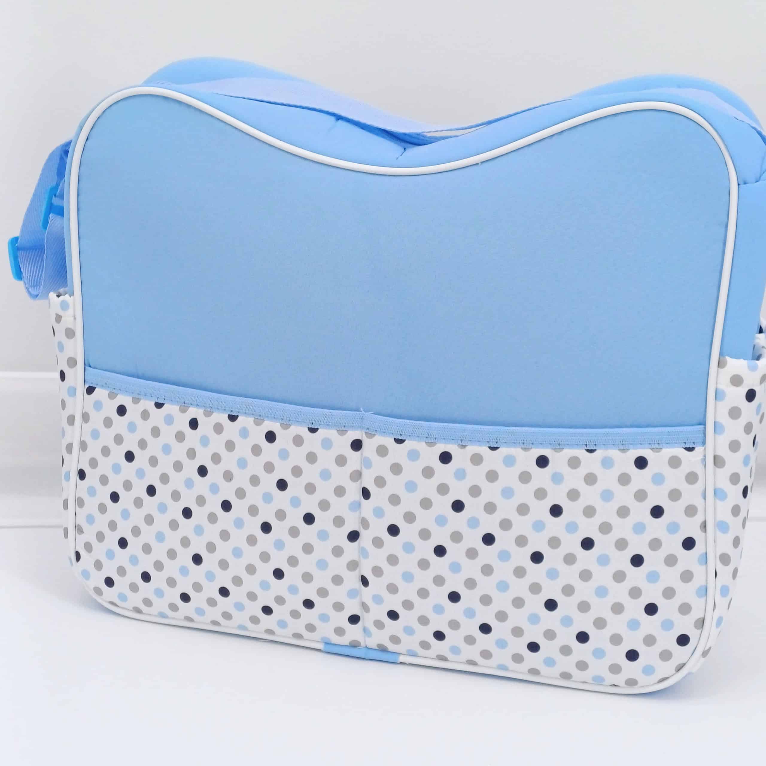 Description : Ce joli sac de poussette en bleu et motifs à pois est parfait pour accompagner les sorties avec votre bébé. Il offre un grand espace de rangement pour transporter facilement les indispensables de bébé, comme les couches, les biberons, les vêtements de rechange et bien plus encore. Sa poche avant zippée et ses poches latérales permettent un accès rapide aux petits objets. Avec sa sangle ajustable, ce sac se porte confortablement en bandoulière ou se fixe facilement à la poussette pour plus de praticité.